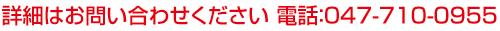 まずは、お気軽にご連絡を! >>> TEL&FAX : 047-710-0955